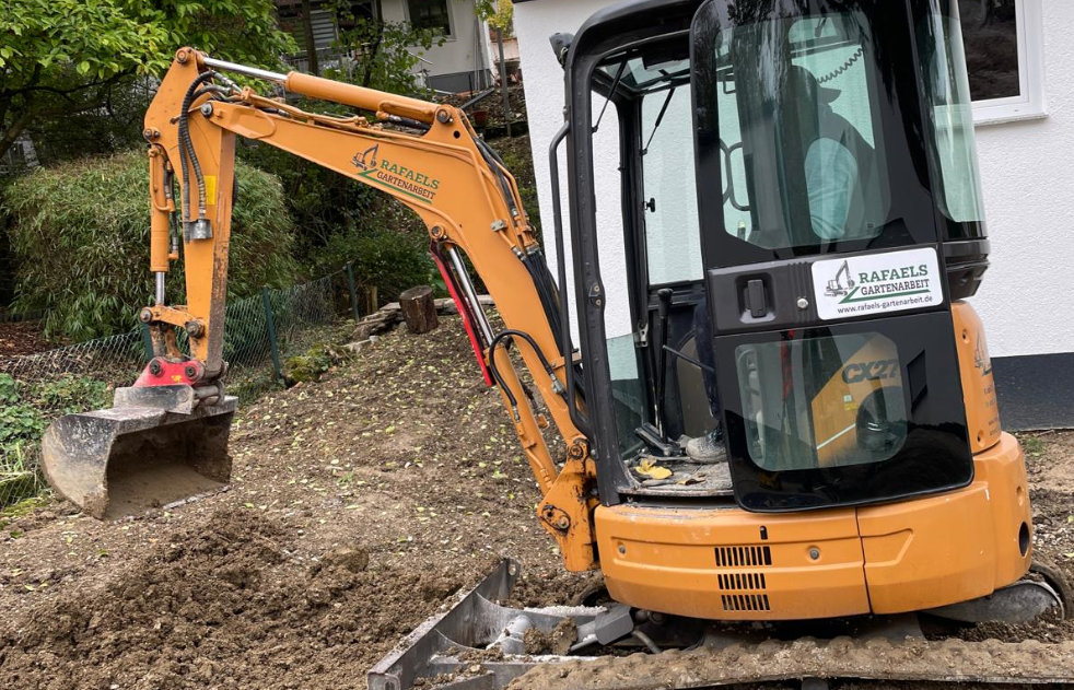 Abtragen und Auskoffern von Hofflächen, Bodenaufbereitung zur Neuansaat und Neugestaltung des Gartens